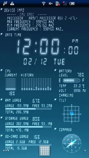 Overview: Device Info Live Wallpaper will indecate varios device information of your phone in a cool way,snappily!
